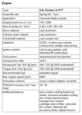 “The beauty of the Chevy Malibu Hybrid is that customers don’t have to choose between a stylish, expressive, fuel-saving sedan full of standard content and the gasoline that goes in the tank,” said Chevrolet General Manager Ed Peper. “The Malibu Hybrid‘s winning package of uncompromising design and fuel economy will help us assert leadership in the midsize sedan segment and meet the needs of Chevy customers.”