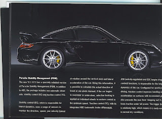 Looks like the Frankfurt Show leaks are off to an early start this year as some "Mata Hari" managed to disrespectfully... scan a copy of the official 2008 Porsche 911 GT2 (997) brochure and upload it to the net for the world to see.. You can eat your heart out with the whole 35-page long brochure after the jump so we’ll be concise and pinpoint the most important FAQ’s. Equipped with a 3.6 litre six-cylinder ‘boxer’ engine with biturbo turbocharging and Variable Turbine Geometry (VTG) that delivers 530 hp at 6500 rpm (997 Turbo: 480Hp) and 505 lb-ft of torque at 2,200-4,500 rpm, the uber alles 997 GT2 weighs in at just 3,175 lbs – 1.440kg. Power is transferred to the rear wheels via a 6-speed manual gearbox. Finally, according to Porsche, the 911 GT2 manages to accelerate from standstill to 60 mph (96 km/h) in just 3,5 sec and to 100mph (160 km/h) in 7,4 sec while it reaches a top speed of 204mph which translates to 328 km/h. -Click “Read More…” below for the full brochure