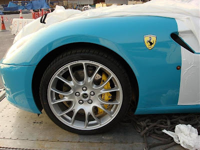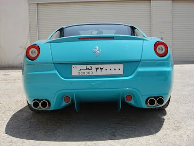 A blue Ferrari, we can handle; a green one, well we can handle that too but this is one prancing horse that’s way too haunting for us. And to think that the Arabian owner of this Ferrari paid who knows how many of hundreds of thousands of hard earned (…) petrol-dollars to custom order the turquoise coloured 599 GTB with the matching interior. What a pitiful site this 599 GTB is. Damn Ferrari’s personalization options… -More pictures of the Viagrated Ferrari after the jump