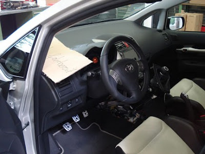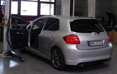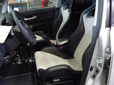 Here’s a set of “scoop” images that we discovered at our Italian buds at Autoblog.it that will certainly raise a few question marks. The most obvious one is whether what we’re looking here is the forthcoming Toyota Auris TS or just a privately supped-up version with a bodykit and a pair of bucket seats? If we had to choose, we’d probably pick the first scenario. Why? Well, first of all the images seem to have been taken inside a Toyota repair shop –see the Yaris and the WRC (?) Toyota in the above shot. Then there’s the car itself. If it’s a bodykit, then it’s a damn good one. Everything looks factory-made: sporty bumpers, alloy rims, roof spoiler and twin exhaust pipes. In the interior the featured Auris gets a set of bi-colour bucket seats and sporty pedals -or at least that’s all we can see. The bucket seats probably eliminate the chance that this is a Toyota made sport pack for the Auris. But the detail that made us say that it’s official is the German license plate: AUR @ IS 924. That’s something you’d only see on an official car. With the Frankfurt Show just around the corner, we’ll find out soon enough. -Follow the jump for more images